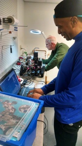 Brian Jones test the pH sensor. This sensor will be used with two of the robot projects.